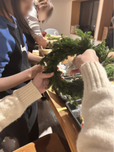 また、リースを作りながらお互いの草津での生活を共有して相談会のような雰囲気になっているグループがあったり、