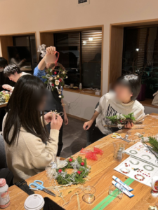 第1部のリース作りから参加してくれた方々に加え、2部から参加の方も混ざって大盛り上がり!