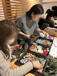 (どのオーナメントを使おうか、出来上がりを想像しながら迷いに迷って相談しあっている方々も^^)