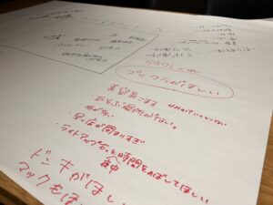 話したことや思いついたことをメモに書き出しながら、対話はどんどん広がっていきます。
