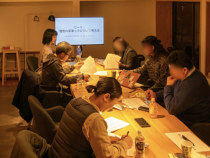 会の後半では、今までに挙がった話をまとめながら、意見を整理するワークを行いました。