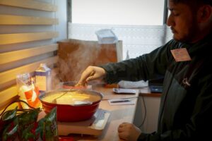 マルシェ開始の午前11時、予報に反して外では雪がちらついていました。