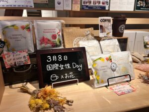この日は国際女性デーであったため、ミモザをあしらったドリップバッグやネパールコーヒーをご用意くださいました。